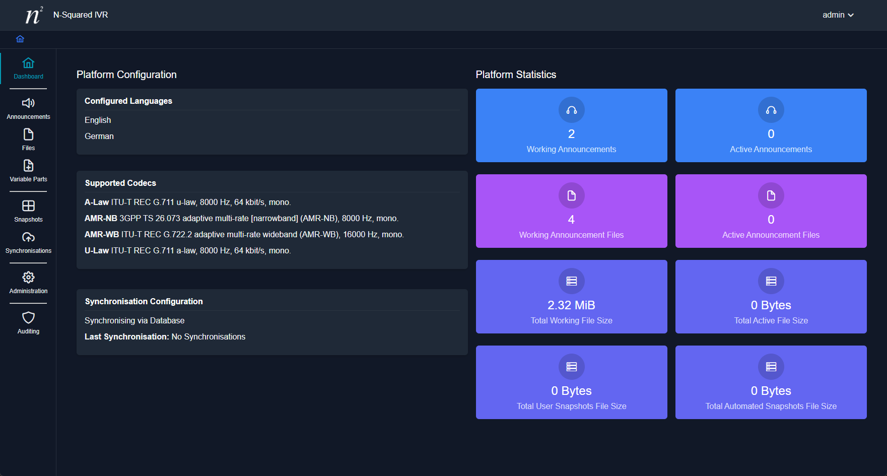 - Synchronisation - Setting up and executing IVR server synchronisations.