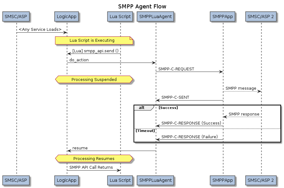 The SMPPLuaAgent is an asynchronous helper for Lua scripts running within the LogicApp. It is used for sending out SMPP client requests.