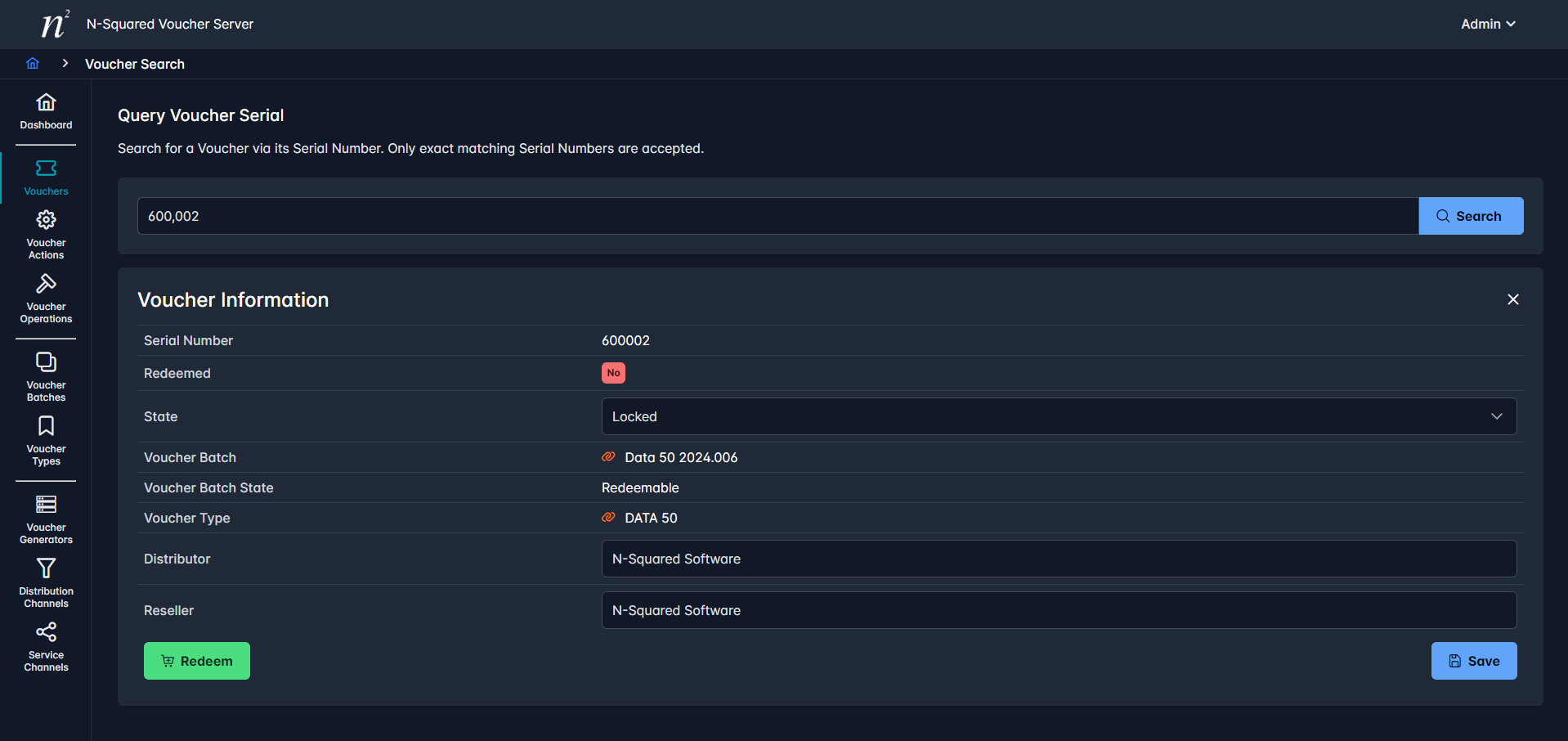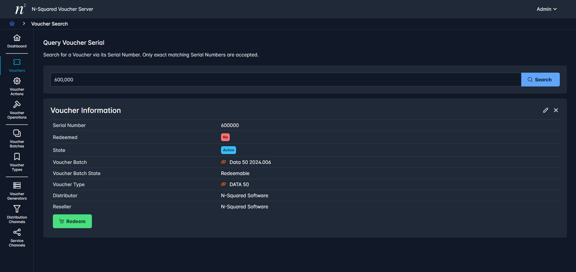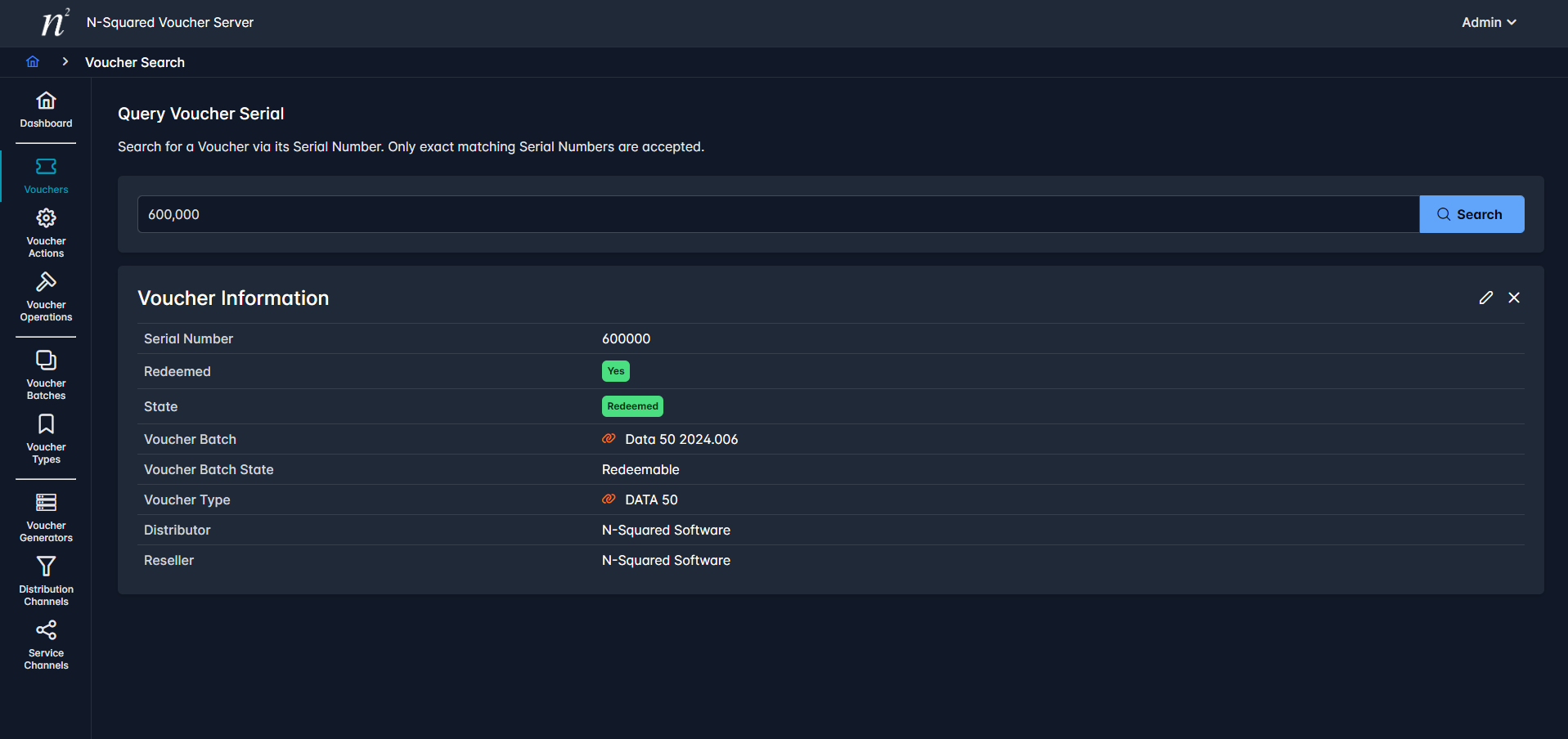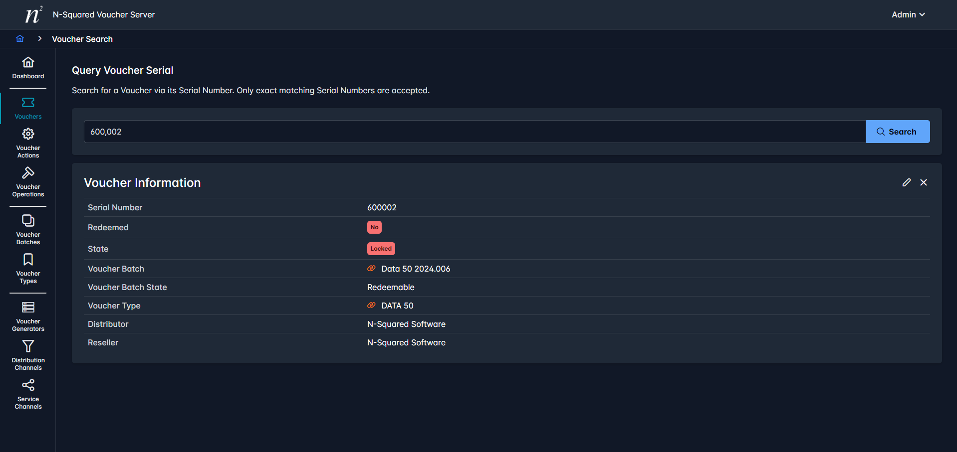 The Voucher Server supports querying of Vouchers via their Serial Number.