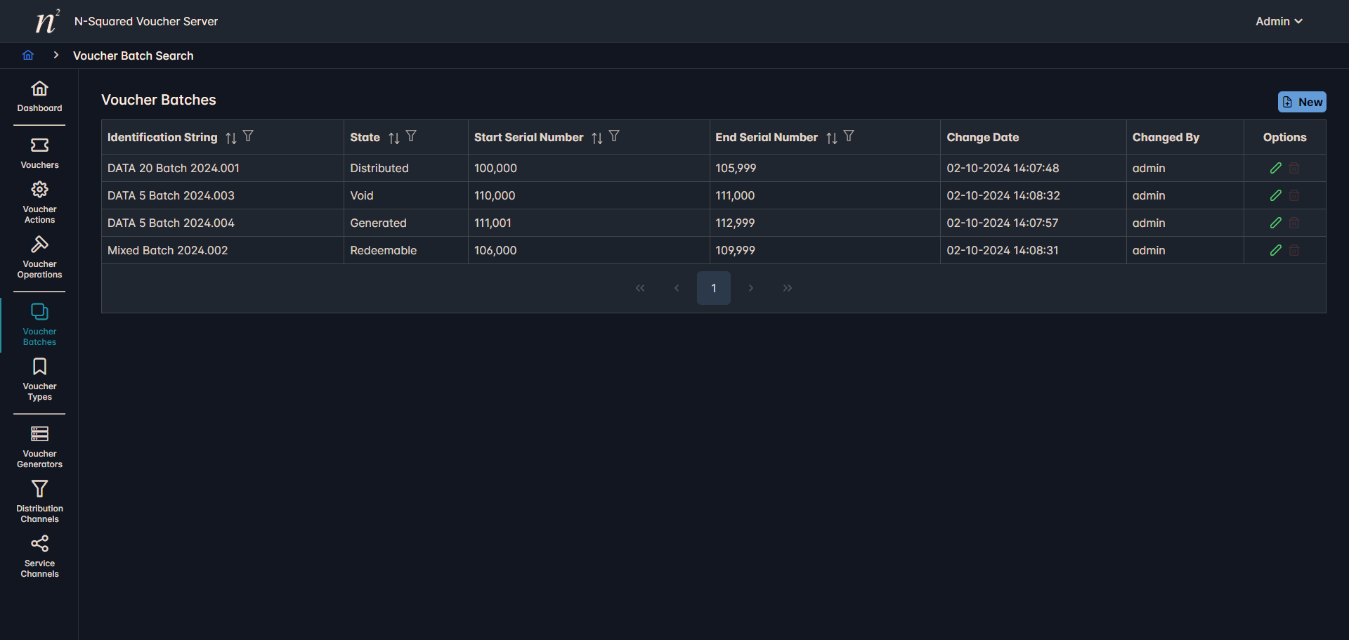 All configured Voucher Batches will be shown with standard features for searching and sorting available via the table controls.
