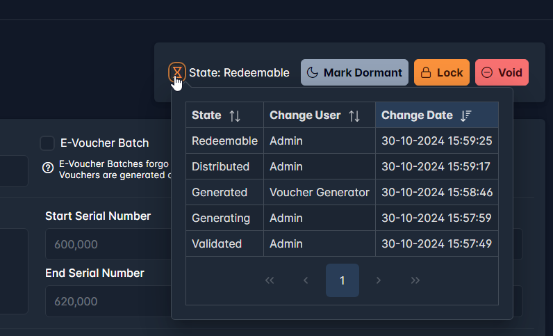 This functionality may be accessed via the hour glass button next to the Voucher Batch state.