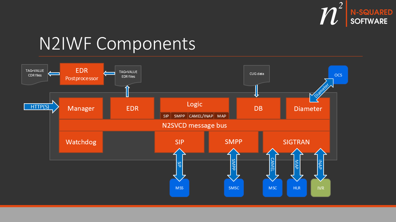 The N-Squared Inter-Working Function (N2IWF) is a protocol adaptor providing network charging integration between a Diameter-capable Online Charging Server from Legacy and Next Generation network-side call and message control protocols: